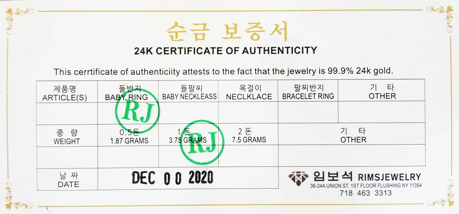 – 임보석의 모든 순금제품은 24K 도장이 각인되어 있습니다.